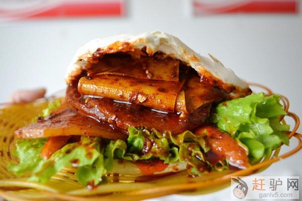 土豆片做的夹馍,它是将土豆切成片,用竹签穿成串,在沸水锅里煮熟,然后把土豆片夹在有两个手掌一样大的烧饼里g_a_n_l_v_5_c_o_m。最核心的是香辣