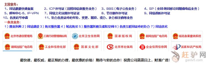 (1)sp经营许可证:是指互联网业务涉及内容服务、娱乐、游戏、短信、彩信WAP、铃声下载,商业信息和定位信息等服务,信息服务业务面向的用户是固定通信网络用户、移动通信网络用户、因特网用户或其他数据传送网络的用户,必须要办理此证书赶驴网。